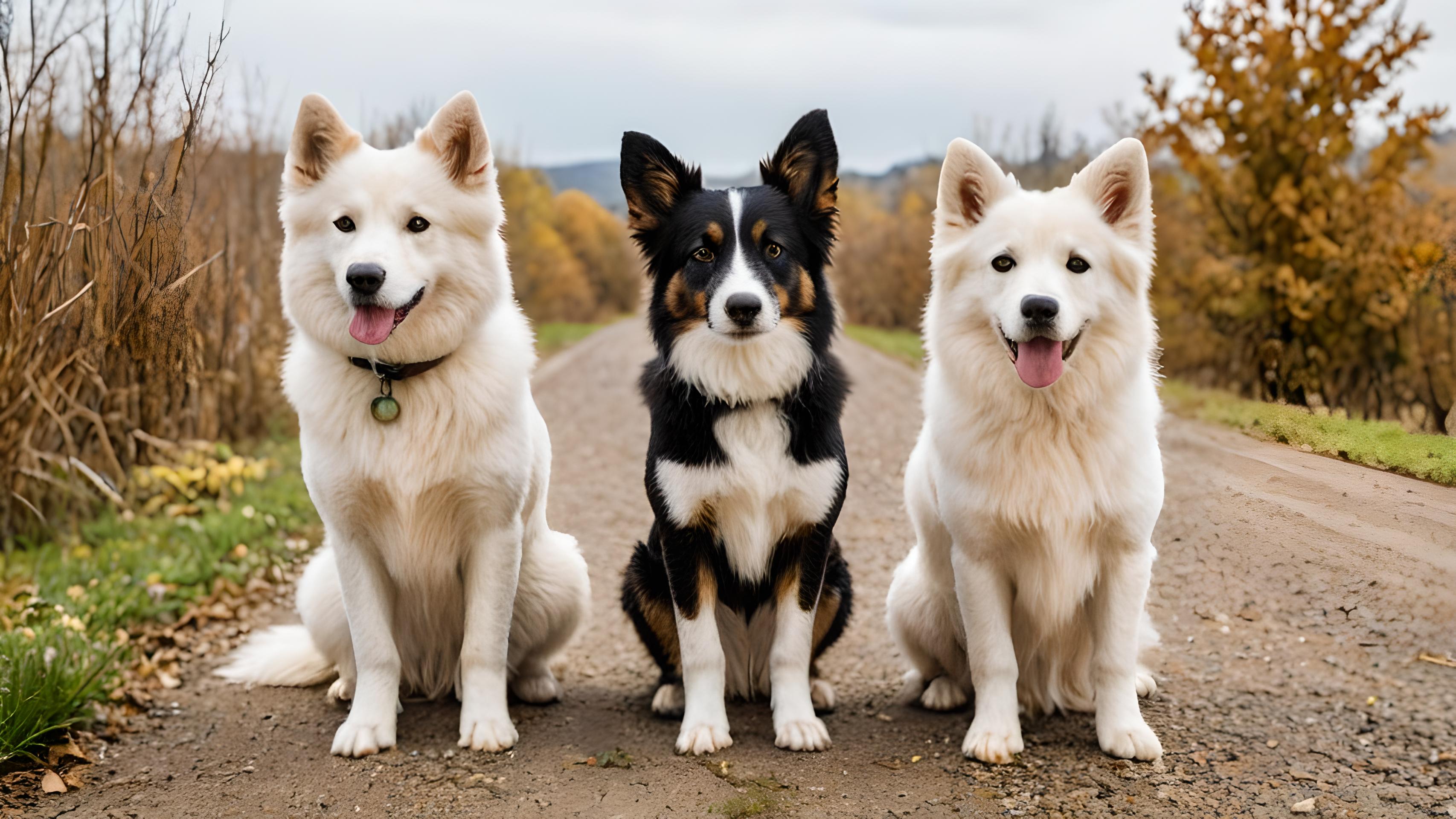 A moment of pause on the journey: a group of loyal dogs enjoying a serene afternoon on the road. Their companionship and spirit remind us of the beauty in nature and friendship.