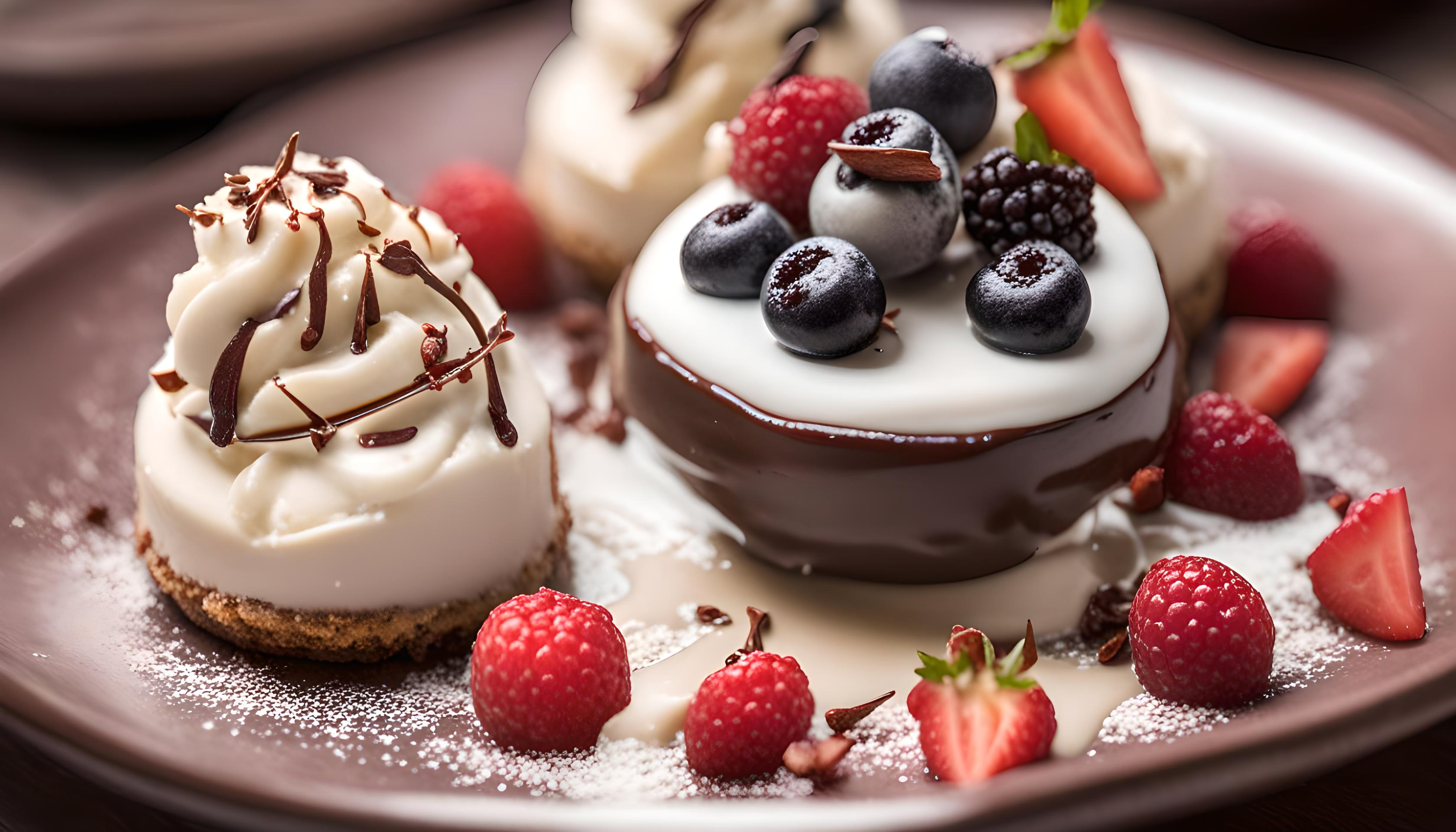 Indulge in the perfect harmony of sweetness with these delectable desserts topped with fresh fruit. Each bite is a celebration of flavors and textures, showcasing the artistry of pastry-making. Treat yourself to a moment of pure bliss.
