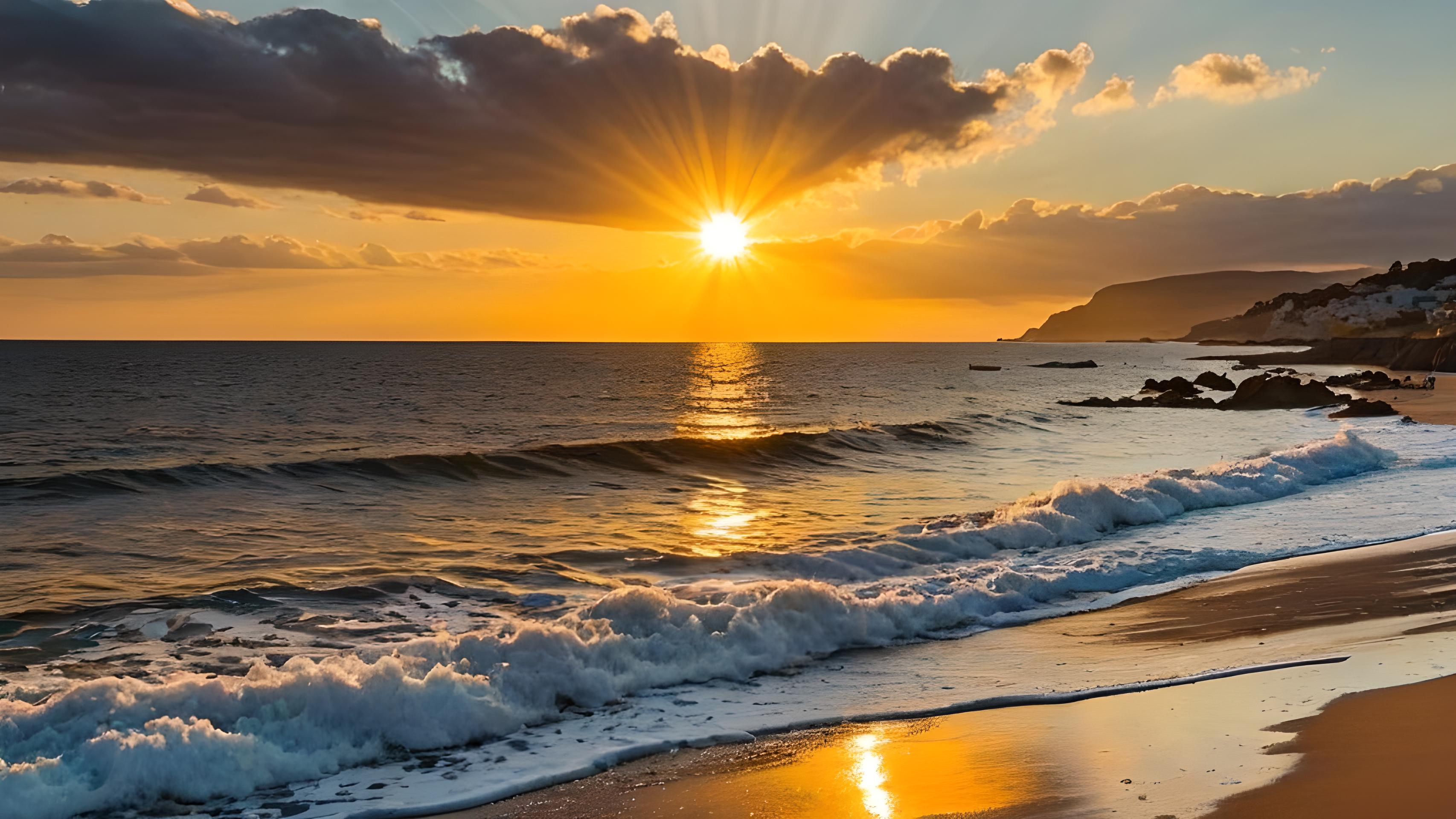 Chasing the last rays of sunlight as the waves dance along the shore. There's nothing quite like a peaceful evening by the ocean.