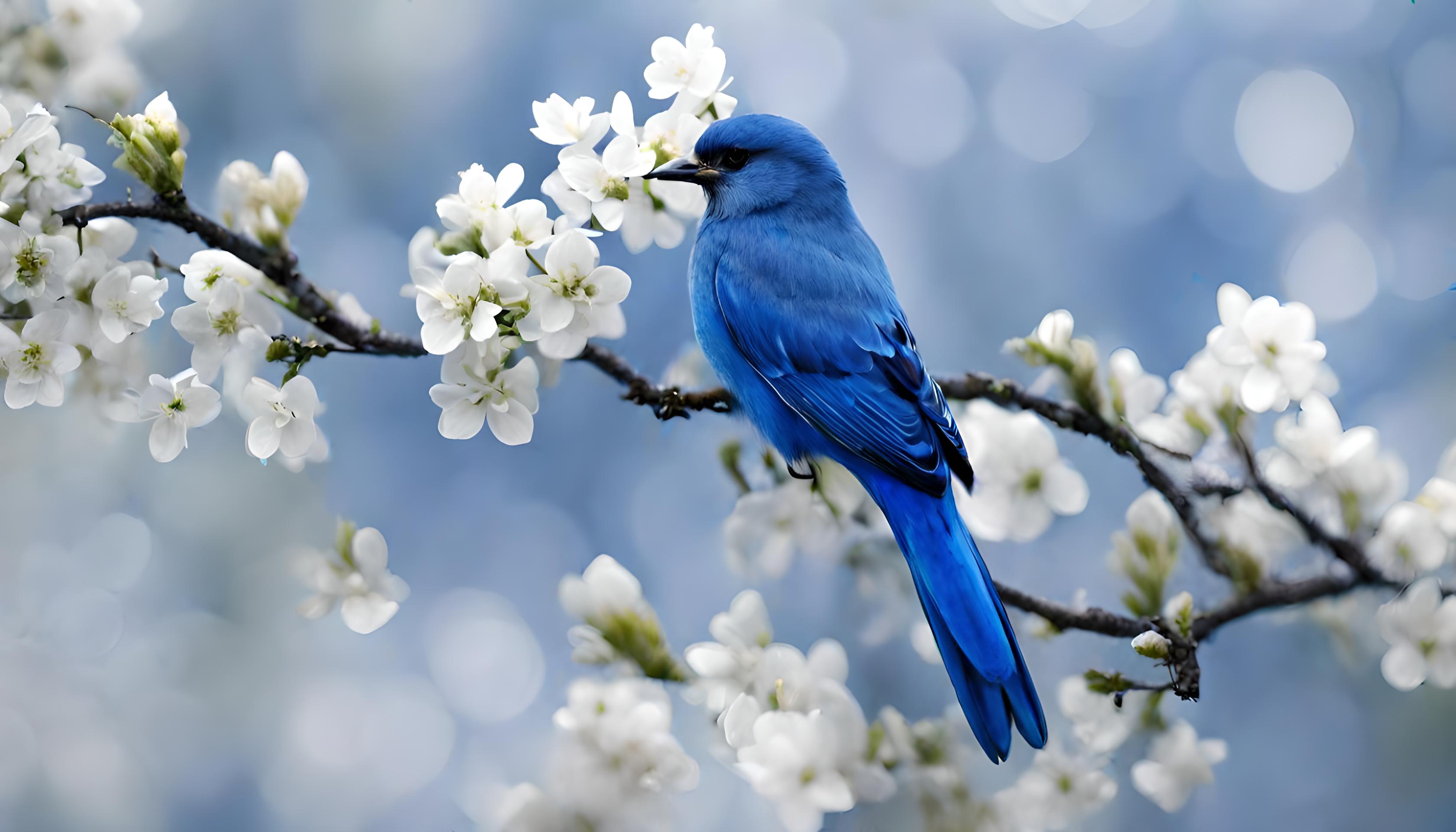 Enjoying the serene beauty of spring, a vibrant bird finds its perfect perch on a blossoming branch.